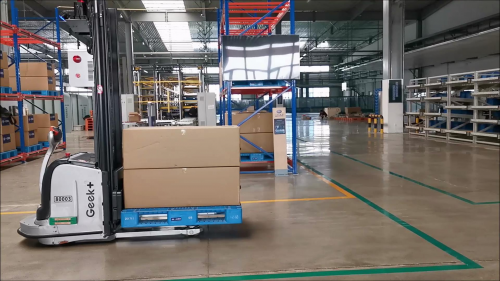 Geek+無(wú)人叉車在長(zhǎng)春一汽智能工廠內(nèi)運(yùn)行作業(yè)