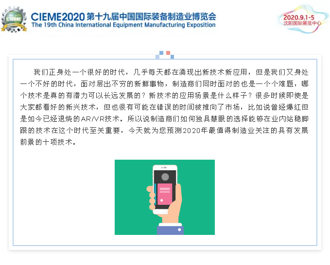 前瞻 | 2020年最值得制造業關注的10項關鍵技術