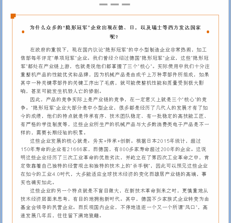 德國(guó)制造業(yè)“隱形冠軍”企業(yè)啟示錄