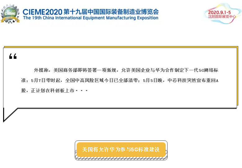 五月第一周裝備制造業(yè)動(dòng)態(tài)