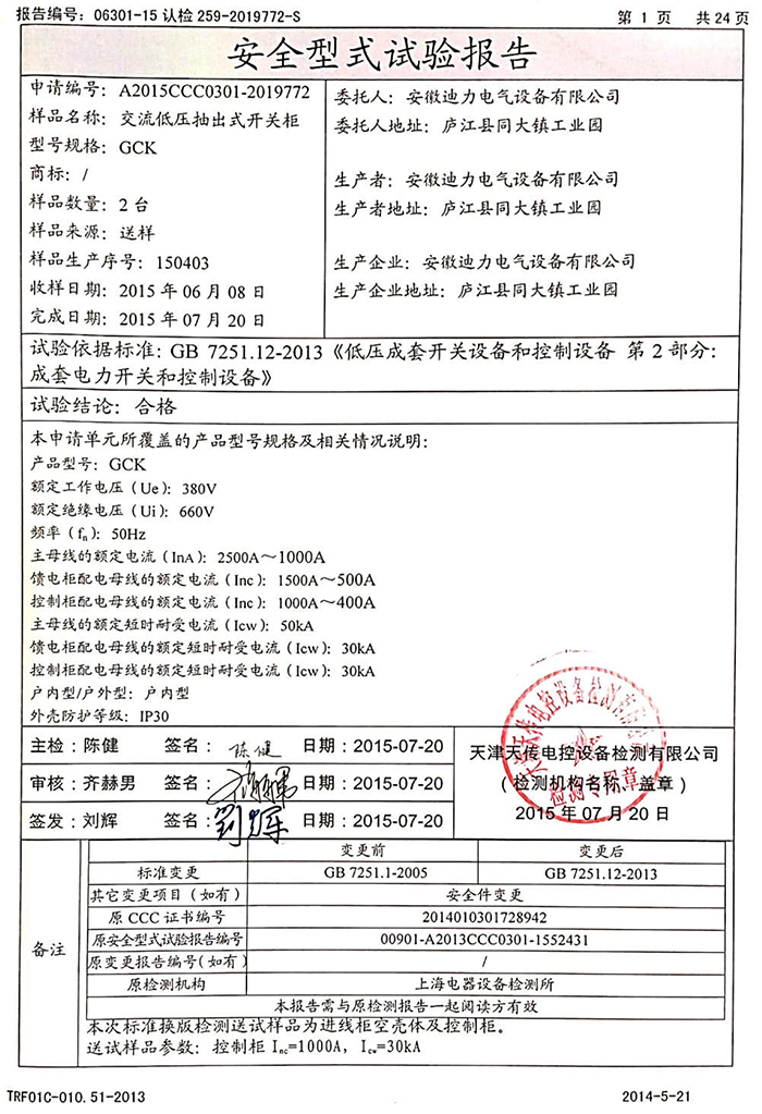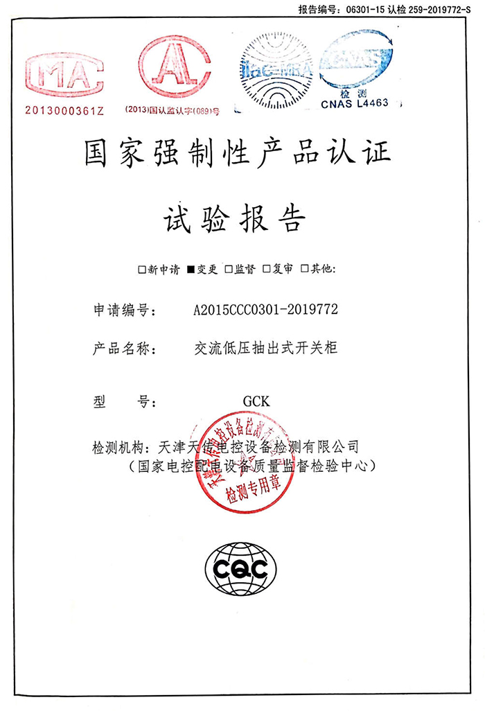 GCK 抽出式開(kāi)關(guān)柜 3C 及檢驗(yàn)報(bào)告