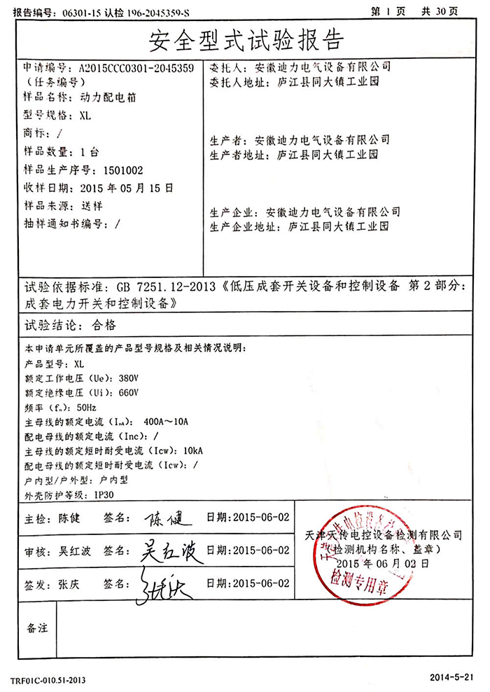 XL 動(dòng)力配電箱 3C 及檢驗(yàn)報(bào)告