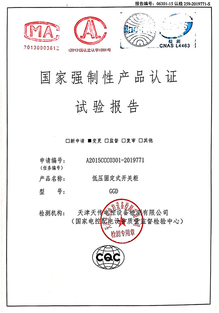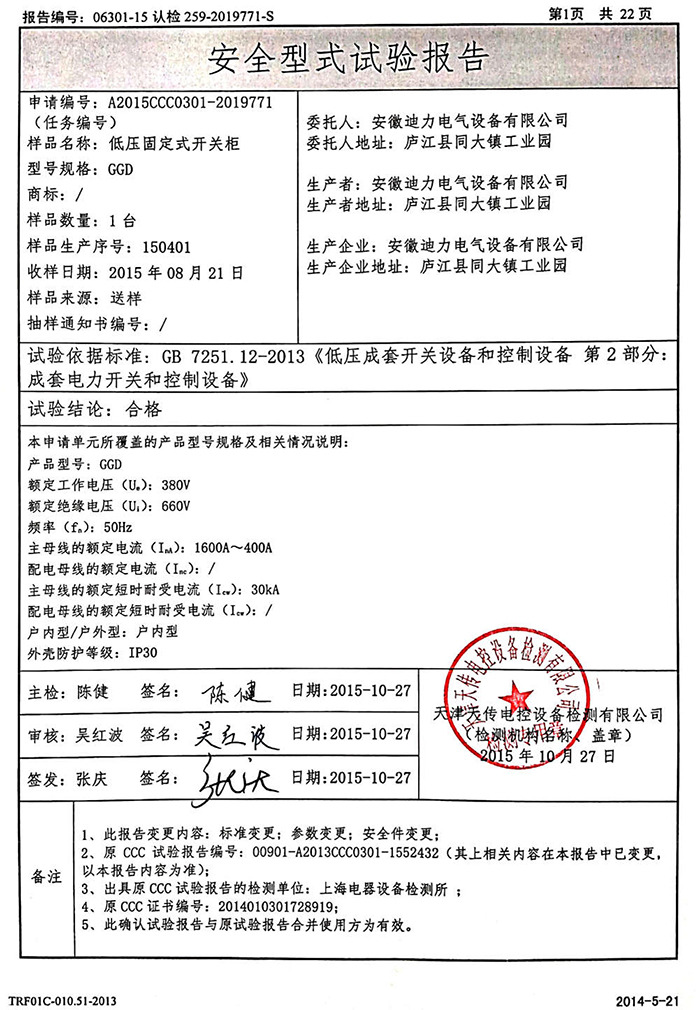 GGD 固定式開關柜 3C 及檢驗報告